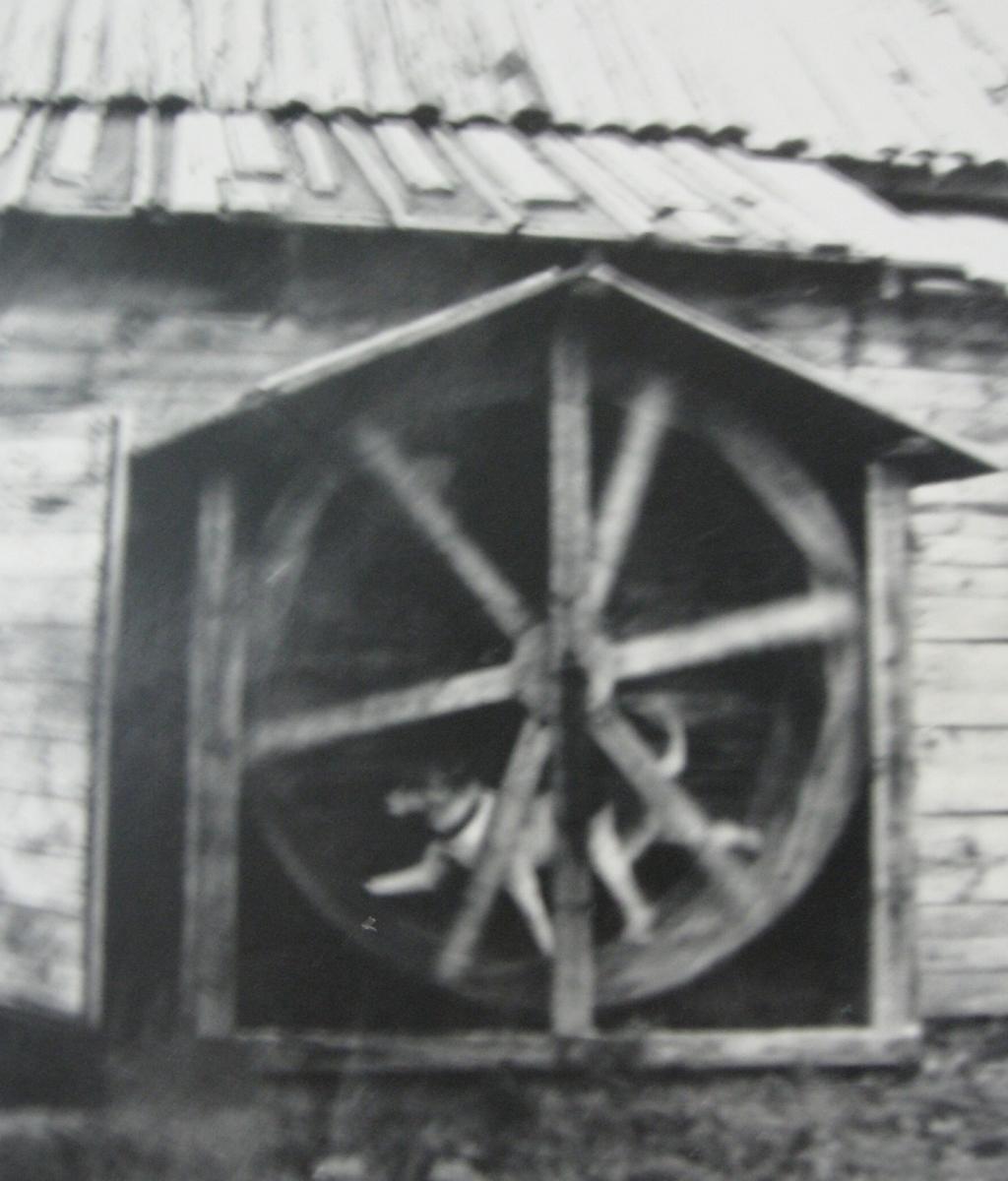 Inventif, Elphège imagine un système original pour amener de l'eau dans la maison : un réservoir installé au grenier est rempli par la course d'un chien à l'intérieur d'une grande roue qui actionne la pompe à eau.